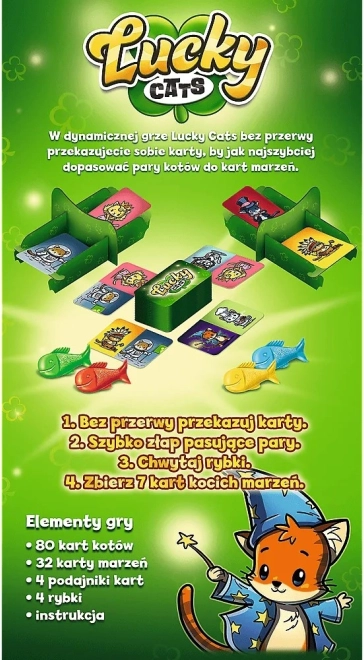 „Lucky Cats” to dynamiczna gra karciana, w której najtrudniejszym zadaniem jest spełnić kocie marzenia. Koty też mają swoje ambicje — czy to zostać kosmonautą, członkiem rodziny królewskiej, szefem kuchni, czy piosenkarzem — a ty możesz im teraz pomóc je zrealizować!