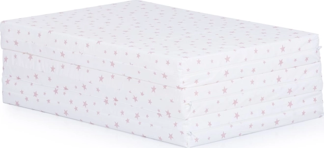 Składany materac Chipolino o wymiarach 120x60 cm został zaprojektowany tak, aby pasował do standardowych dziecięcych łóżeczek. Dzięki kompaktowej konstrukcji ułatwia zarówno użytkowanie, jak i pielęgnację. Pokrowiec materaca ozdobiony jest różowymi gwiazdkami, co nadaje pokojowi dziecka łagodny i przyjemny wygląd.