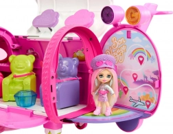 Wnętrze samolotu jest dopracowane w detalach: kokpit z serduszkowymi oknami, przesuwane i obrotowe siedzenie pilota, schowki w kształcie chmur oraz wygodne, „misiowe”/pluszowe stylowe krzesełka dla pasażerów. W zestawie znajdują się modowe i podróżne akcesoria – od paszportu i bagażu po wózek do stylizacji, szczotkę i stolik – więc pomysłów na historie i scenariusze nie zabraknie.
