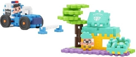 Zestaw zawiera 80 elementów oraz dwie specjalne figurki. Dzieci mogą bawić się w dzielnego policjanta lub spróbować uciec jako Rabuś Gizmo. Zachęć ich wyobraźnię i twórczość.
