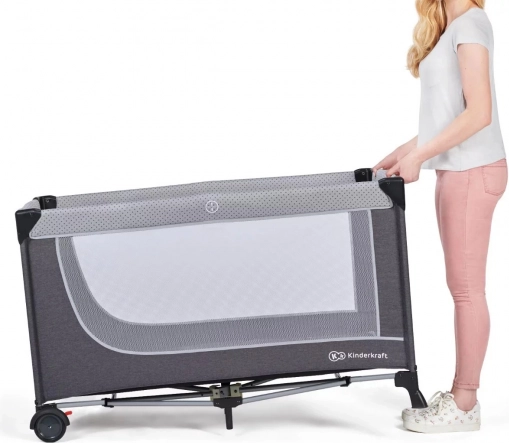 Łóżeczko turystyczne LEODY ma mechanizm szybkiego składania i rozkładania. Zaoszczędzi Ci czas nawet podczas gorączkowego pakowania – wystarczy kilka ruchów i łóżeczko jest gotowe do drogi! - Siatkowe boki