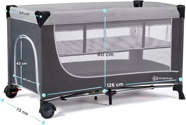 Łóżeczko turystyczne LEODY jest idealne w podróży. Niezależnie od tego, czy wybierasz się z wizytą do rodziny, czy na wspólną wycieczkę, łatwe i szybkie składanie, solidna rama oraz 2 poziomy wysokości materaca pozwolą stworzyć bezpieczną i wygodną przestrzeń do spania.