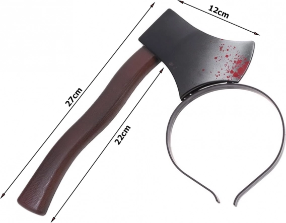 Ten sprytny dodatek do kostiumu tworzy optyczną iluzję, że przez twoją głowę przechodzi siekiera – efekt jest całkowicie bezpieczny i wyjątkowo widowiskowy. Dzięki lekkiej konstrukcji i elastycznej opasce wygodnie się nosi nawet przez dłuższy czas i pewnie trzyma się na miejscu.