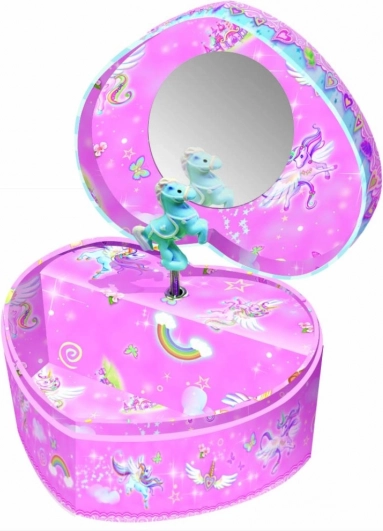 Schowaj swoje pierścionki, bransoletki i inne drobiazgi do szkatułki, która ucieszy zarówno oko, jak i ucho. Po nakręceniu mechanizmu i otwarciu wieczka rozbrzmiewa przyjemna melodia, która podkreśla magiczną atmosferę dziecięcego pokoju.