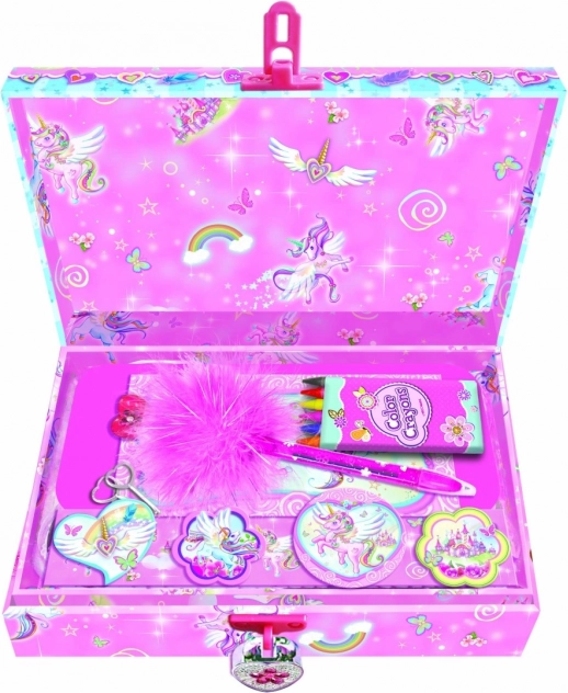 Tajny zestaw listowy i szkatułka na biżuterię z motywem jednorożców
