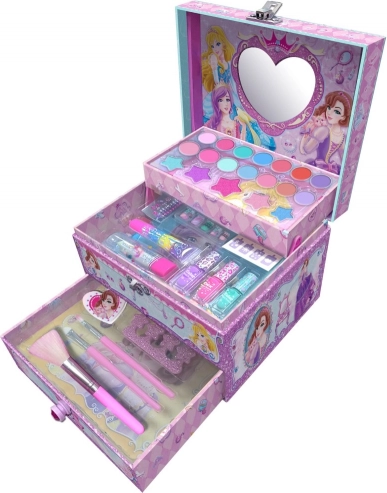 Przedstawiamy kosmetyczny kuferek zaprojektowany specjalnie dla małych księżniczek i młodych dam, które chcą się upiększać i eksperymentować z różnymi stylami. Zestaw zawiera: