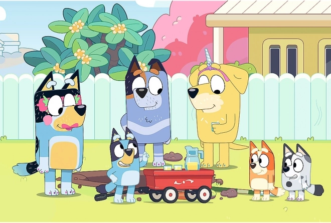 Wesoły rodzinny motyw z serialu BLUEY natychmiast przyciąga uwagę dzieci i zachęca do wielokrotnego układania oraz wspólnej rodzinnej zabawy.
