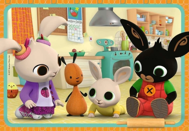 RAVENSBURGER przynosi zabawę z puzzlami Bing dla dzieci. Zawiera dwie układanki z pozytywnymi motywami, każda po 12 elementów, idealne dla małych fanów Binga.