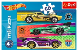Odkryj kolorowy świat samochodów wyścigowych z puzzlami HOT WHEELS marki Trefl. Zestaw zawiera 60 solidnych elementów, które po ułożeniu tworzą dynamiczny wyścigowy motyw, idealny dla małych miłośników aut i układanek.