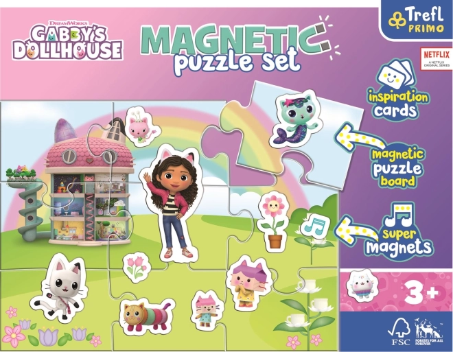 Ten magnetyczny zestaw puzzli przenosi do domu ulubiony świat Gabinowego magicznego domku. Dzięki połączeniu 9 elementów puzzli, magnesów z postaciami i przedmiotami oraz kart inspiracyjnych mali fani mogą układać sceny, wymyślać historie i bawić się wciąż na nowo.