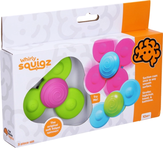 Odkryj zabawne zabawki sensomotoryczne dla najmłodszych – zestaw trzech kolorowych spinnerów WHIRLY SQUIGZ z przyssawkami. Łatwo mocują się do gładkich powierzchni i po dotknięciu płynnie się obracają. Wspierają małą motorykę, koncentrację i percepcję sensoryczną. Idealne na okno, do wanny, na płytki czy do krzesełka do karmienia. Miękki materiał, bezpieczne kształty i niekończące się kręcenie dla radości dzieci.