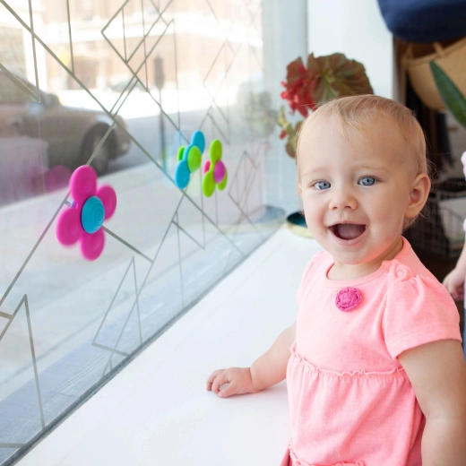 Spinnery łatwo przymocujesz do okna, płytek, wanny czy krzesełka do karmienia, a dzieci mogą bawić się wszędzie – w domu i w podróży.