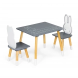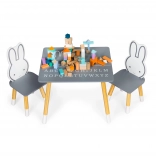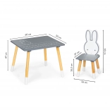 Dziecięcy stół i krzesła Ecotoys to doskonały wybór dla wszystkich małych artystów i odkrywców. Stół z motywem królika oferuje nie tylko miejsce do rysowania i zabawy, ale także do nauki alfabetu. Dzięki prostemu skandynawskiemu designowi świetnie pasuje do każdego pokoju dziecięcego lub sali zabaw.
