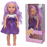 Urocza lalka w fioletowym kolorze o wysokości 35 cm ucieszy każde dziecko. W zestawie znajduje się szczotka do włosów, dzięki której można łatwo czesać fryzury i rozwijać dziecięcą wyobraźnię.