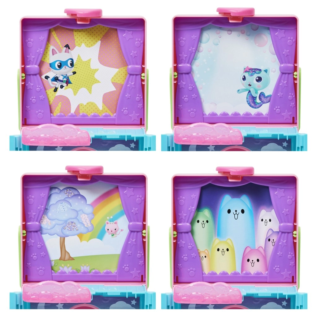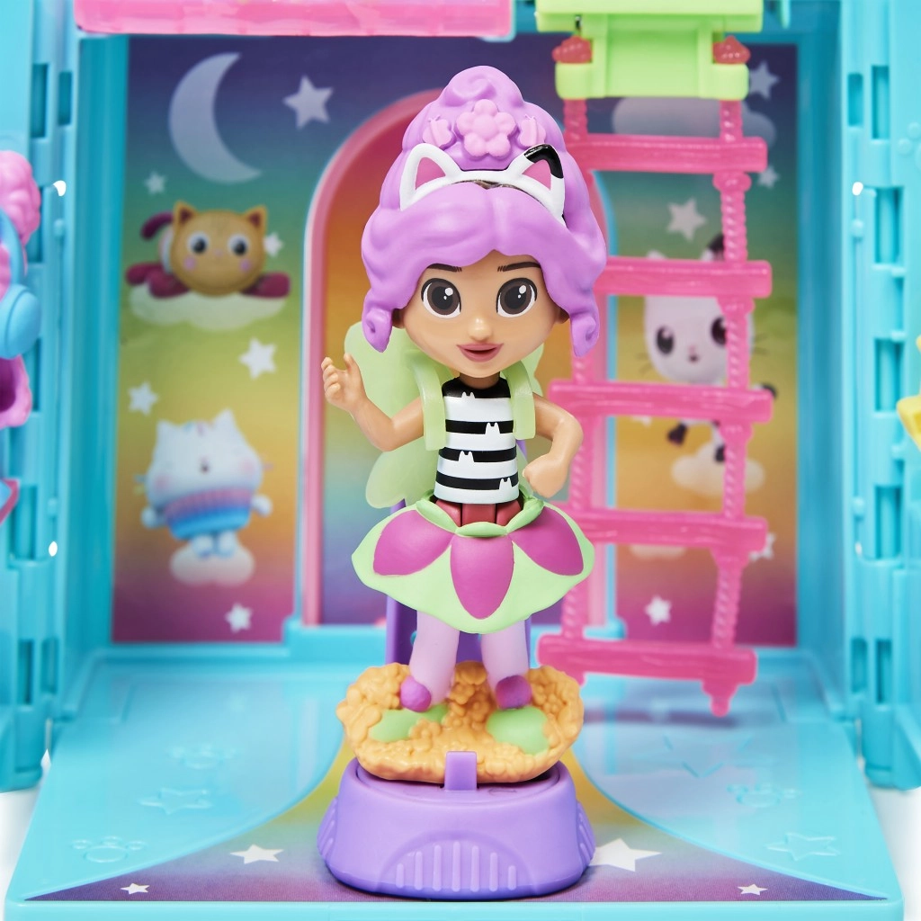 Zestaw wspiera kreatywność i wyobraźnię dzieci od 3 lat i jest kompatybilny z domkiem Gabby’s Purrfect Dollhouse dla rozszerzonej zabawy. Kompaktowa „kocia” walizeczka służy jako organizer do przechowywania oraz przenośna scena do zabawy gdziekolwiek.
