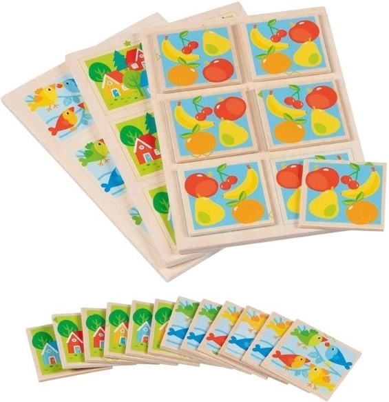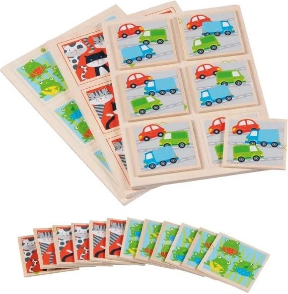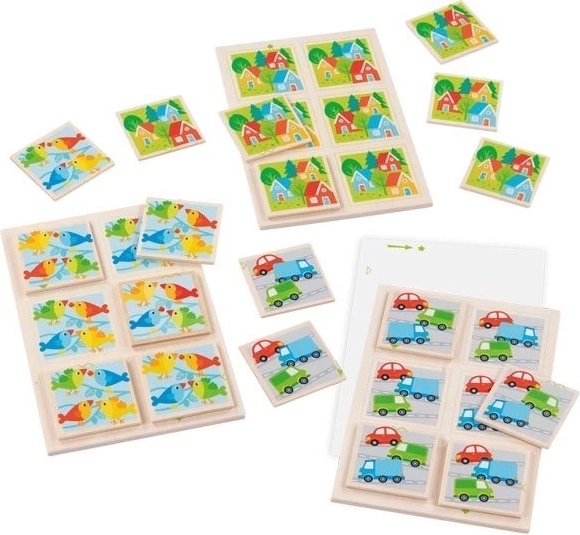 - Zawartość zestawu: 18 drewnianych kafelków, 3 plansze, instrukcja
