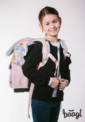 Tornister szkolny BAAGL Zippy Bunny łączy zabawny design z maksymalnym komfortem i bezpieczeństwem. Dzięki przesuwnemu systemowi pleców ERGO ADJUSTABLE SYSTEM, ergonomicznie wyprofilowanym plecom oraz w pełni regulowanym szelkom, pasowi piersiowemu i bocznym paskom kompresyjnym tornister idealnie dopasowuje się do sylwetki dziecka. Lekka, lecz solidna konstrukcja trzyma kształt, a wodoodporne materiały chronią szkolne przybory w każdą pogodę.