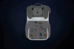 Wesoły motyw króliczka zachwyci dzieci, a elementy odblaskowe zwiększą ich widoczność. Solidny, wodoodporny korpus, stabilne dno oraz izolowana przednia kieszeń z klamrą zwiększają funkcjonalność. Boczne kieszenie z wytrzymałego materiału są idealne na butelkę z napojem.