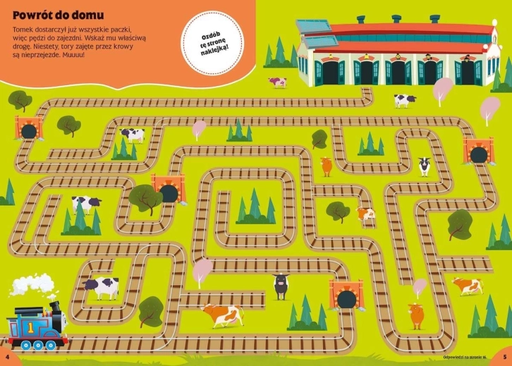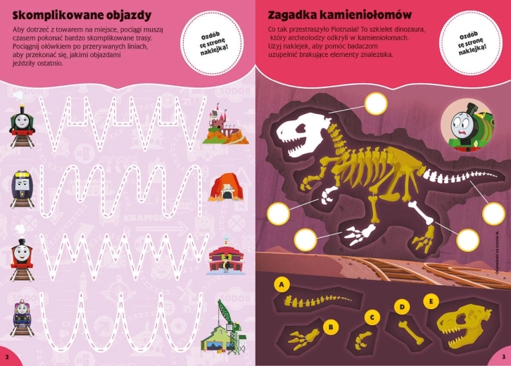 Nowe 100 nalepek jest przeznaczone dla dzieci, które dopiero zaczynają swoją przygodę z książkami aktywnościowymi. Zawarte tu zagadki są proste i zaprojektowane tak, aby wspierać rozwój różnych talentów maluchów. Książka zawiera zadania wymagające spostrzegawczości lub podstawowych umiejętności liczenia, a także ćwiczenia rozwijające kreatywność, poczucie estetyki i sprawność manualną. Na końcu książki znajdują się odpowiedzi do wybranych zadań, dzięki czemu na przykład starsze rodzeństwo może podczas zabawy z łamigłówkami zastąpić rodziców. Zagadki uzupełnione są atrakcyjnymi nalepkami, z których niektóre przydadzą się przy rozwiązywaniu zadań, a inne można przykleić gdziekolwiek, by ozdobić zeszyt, piórnik lub kartkę urodzinową dla kogoś bliskiego. Towarzystwo ulubionych postaci z popularnego serialu animowanego Tom i przyjaciele zachęci was do zabawy, a gdy wszystkie zagadki zostaną rozwiązane, warto sięgnąć po kolejne książki z tej serii. Występują w nich bohaterowie z innych seriali dla najmłodszych!