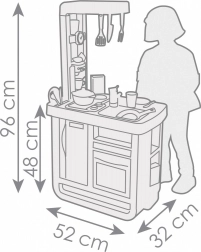 Dostępna jest w delikatnych pastelowych odcieniach, które harmonijnie komponują się z każdym wnętrzem. Rodzice i dzieci z pewnością ucieszą się z bogatego wyposażenia kuchni, które obejmuje kuchenkę z 2 palnikami, piekarnik z otwieranymi drzwiczkami, lodówkę, zlewozmywak z kranem oraz ekspres do kawy. Elektroniczny moduł dźwiękowy podkreśla realizm zabawy dźwiękami gotowania, co przynosi dzieciom jeszcze większą przyjemność.