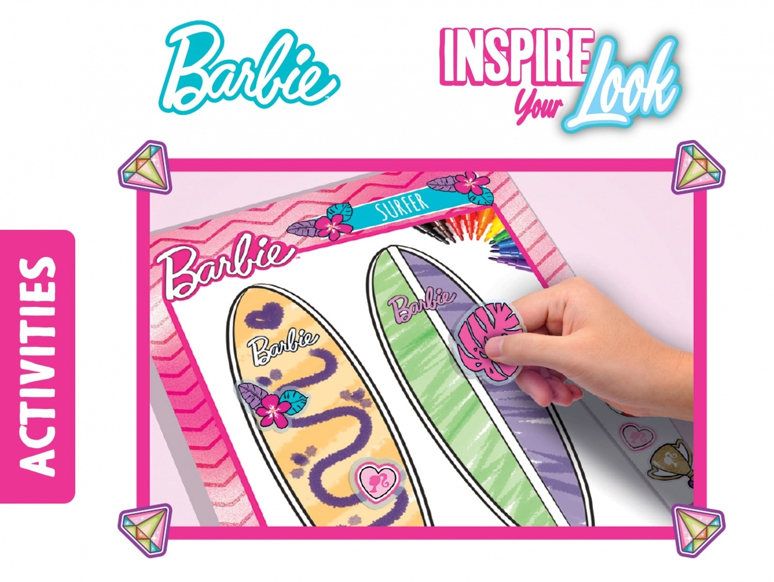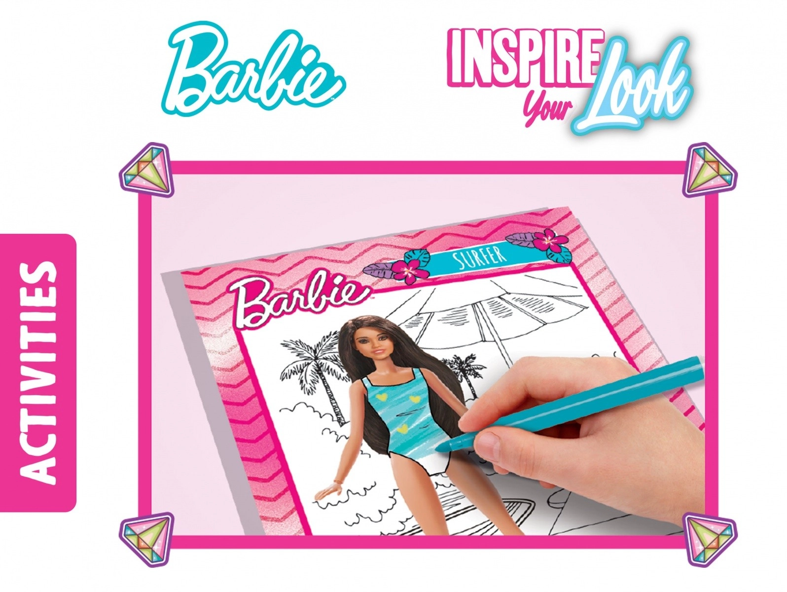 Dzięki unikalnemu szkicownikowi Barbie dziewczynki mogą tworzyć supermodne stylizacje i dać upust swojej kreatywności. Zawiera wiele modelek Barbie do ubierania z niesamowitymi naklejkami z ubraniami i dodatkami.