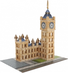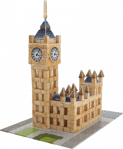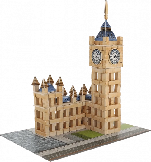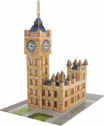 Prawdziwe gliniane cegiełki, drewniane płyty i dekoracje nadają modelowi Big Bena realistyczny wygląd i solidną konstrukcję.