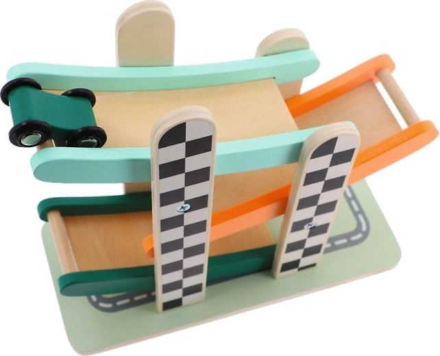 Drewniana tor wyścigowy dla autek ze zjeżdżalnią