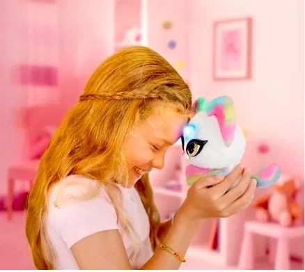 Interaktywna kotka Magiczne Szeptanki Kicia zapewnia dzieciom wyjątkowe i osobiste wrażenia. Dzięki zetknięciu czołami i aktywacji kryształowego serca dzieli się tylko z tobą tajnymi szeptami, które wspierają wyobraźnię, zabawę w odgrywanie ról i rozwój komunikacji. Delikatny, miękki materiał i uroczy wygląd czynią z niej doskonałą maskotkę do zabawy i tulenia.