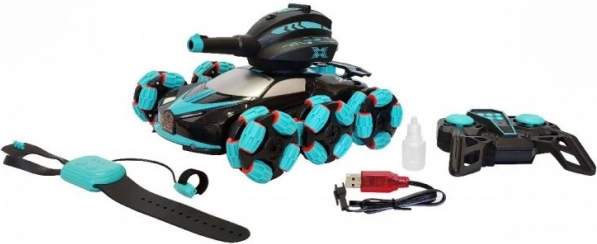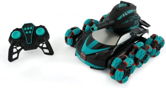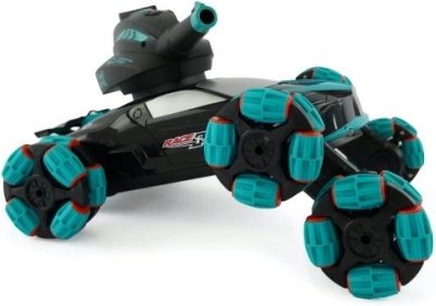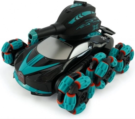 Opanuj teren z DRIVERO wyścigowym autem RC, które nie tylko jeździ w różnych kierunkach dzięki swoim 6 kołom, ale także oferuje interaktywne funkcje, takie jak strzelanie plastikowymi kulkami i efekt dymu z wydechu.