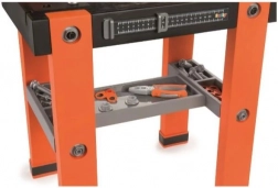Warsztat dla dzieci Black+Decker Bricolo One to realistyczny stół roboczy dla małych majsterkowiczów, zawierający 75 akcesoriów i narzędzi takich jak śrubokręt, młotek, piła, szczypce i imadło, które zapewniają zabawę i rozwijają umiejętności.