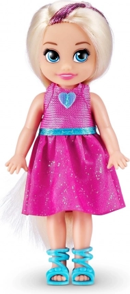 Laleczka ma magiczną sukienkę z lśniącymi detalami oraz długie włosy, które można czesać i stylizować dzięki dołączonemu akcesorium.