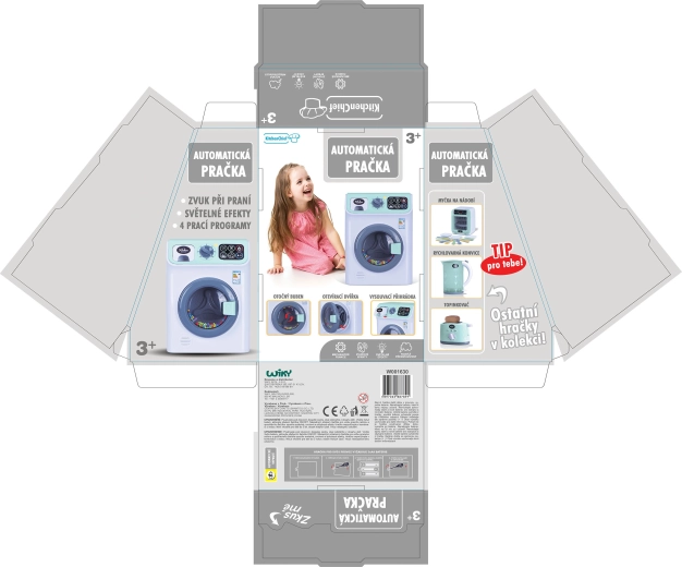 Ta pralka dla dzieci zapewnia autentyczne wrażenia z prania – wystarczy załadować bęben, wybrać program i temperaturę, dodać proszek do prania i włączyć. Bęben naprawdę się obraca, a wszystko uzupełniają realistyczne efekty świetlne i dźwiękowe, dzięki którym zabawa jest jeszcze ciekawsza.