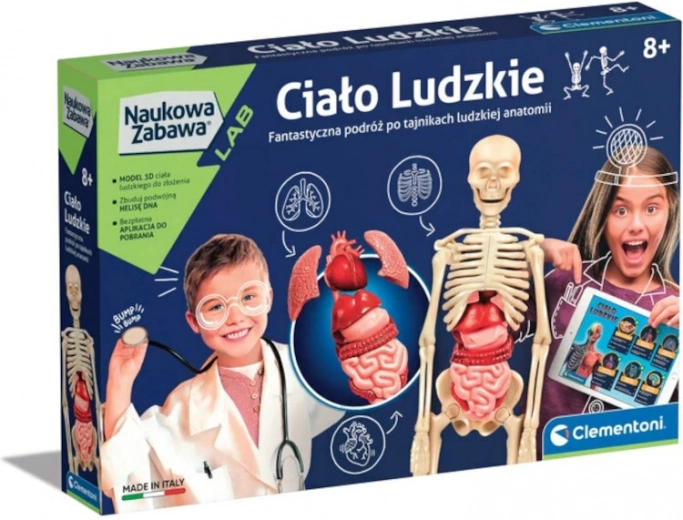 Ten edukacyjny zestaw CLEMENTONI daje dzieciom możliwość poznawania ludzkiego ciała krok po kroku. Złóż szkielet i narządy wewnętrzne, poznaj trójwymiarowy model podwójnej helisy DNA i odkryj, jak działają poszczególne części ciała. Dzięki praktycznemu składaniu dzieci uczą się w sposób obrazowy i z entuzjazmem.