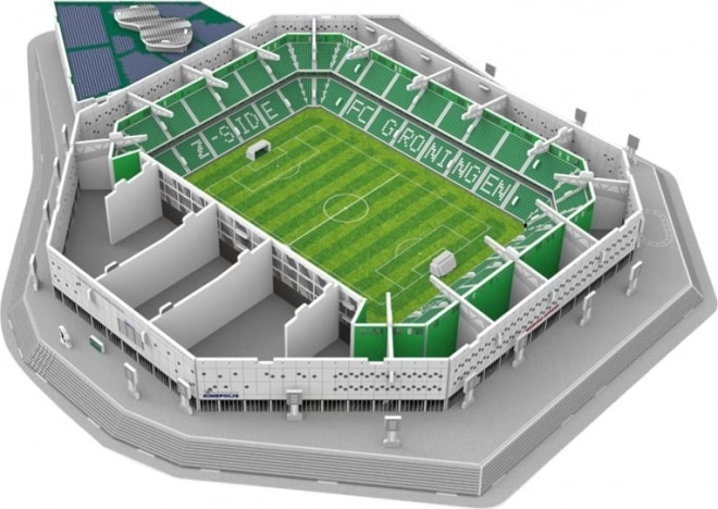 Ciesz się składaniem szczegółowej repliki stadionu piłkarskiego Hitachi Capital Mobility, domowego obiektu FC Groningen, bez potrzeby używania nożyczek ani kleju.