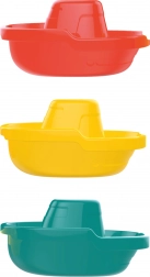 Urozmać kąpiele swoich dzieci zabawnym zestawem trzech kolorowych łódek. Opakowanie zawiera 3 sztuki w kolorach zielonym, pomarańczowym i żółtym, które można łatwo łączyć, nabierać nimi wodę i puszczać po powierzchni. Idealne do zabawy w wannie i rozwoju małej motoryki.