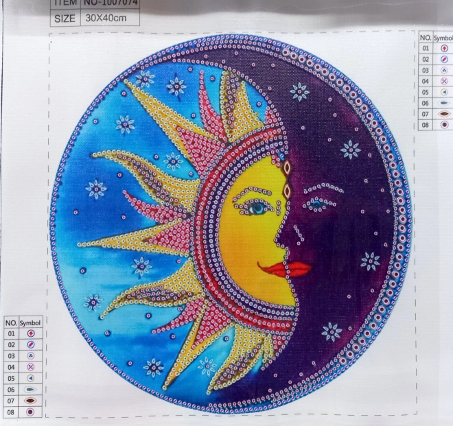 W zestawie znajduje się wszystko, czego potrzebujesz: zadrukowane płótno z warstwą klejącą, aplikator (długopis), tacka, wosk oraz zestaw kolorowych kryształków. Gotowy obraz można łatwo oprawić (rama nie jest częścią zestawu) i zamienić w stylową dekorację domu.