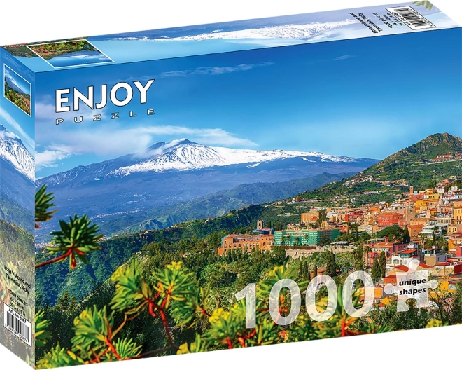 Puzzle Enjoy z motywem Etny i Taorminy, Sycylia. 1000 elementów, wymiary po ułożeniu ok. 68 × 48 cm. Jakościowy relaks i piękna dekoracja na ścianę.