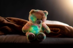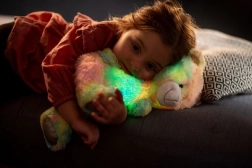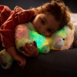 Miś jest nie tylko miękki w dotyku, ale także oświetla ciemność swoimi zmieniającymi się kolorami, co tworzy magiczną atmosferę. Naciśnięcie łapki rozpoczyna odtwarzanie relaksacyjnych melodii, które uspokoją każde dziecko.