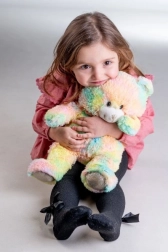 Wypchane zwierzątko z tęczowym futerkiem przyciąga wzrok i imponuje nie tylko wyglądem, ale także miękkością w dotyku.