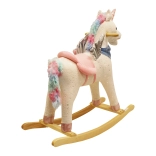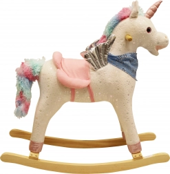 Mięciutkie obicie i przyjemnie wyprofilowane siodło zapewnią komfort nawet podczas dłuższego bujania. Piękny tęczowy wygląd ozdobi każdy pokój.