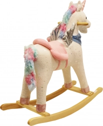 Uroczy bujany jednorożec zamieni dziecięcy pokój w magiczną bawialnię. Oferuje miękką pluszową powierzchnię, stabilne drewniane płozy oraz interaktywne efekty dźwiękowe – potrafi poruszać pyskiem i ogonem. Aktywacja jest prosta za pomocą przycisku w uchu. Świetny wybór do rozwoju motoryki, równowagi i wyobraźni.