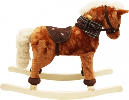 Uroczy bujany koń w wersji gniady ucieszy każde dziecko. Ma miękką pluszową powierzchnię, stabilne drewniane płozy i oferuje efekty dźwiękowe aktywowane przyciskiem w uchu. Komora na baterie jest ukryta na brzuszku, w zestawie znajdują się 3× AG13/LR44 do natychmiastowego użycia.