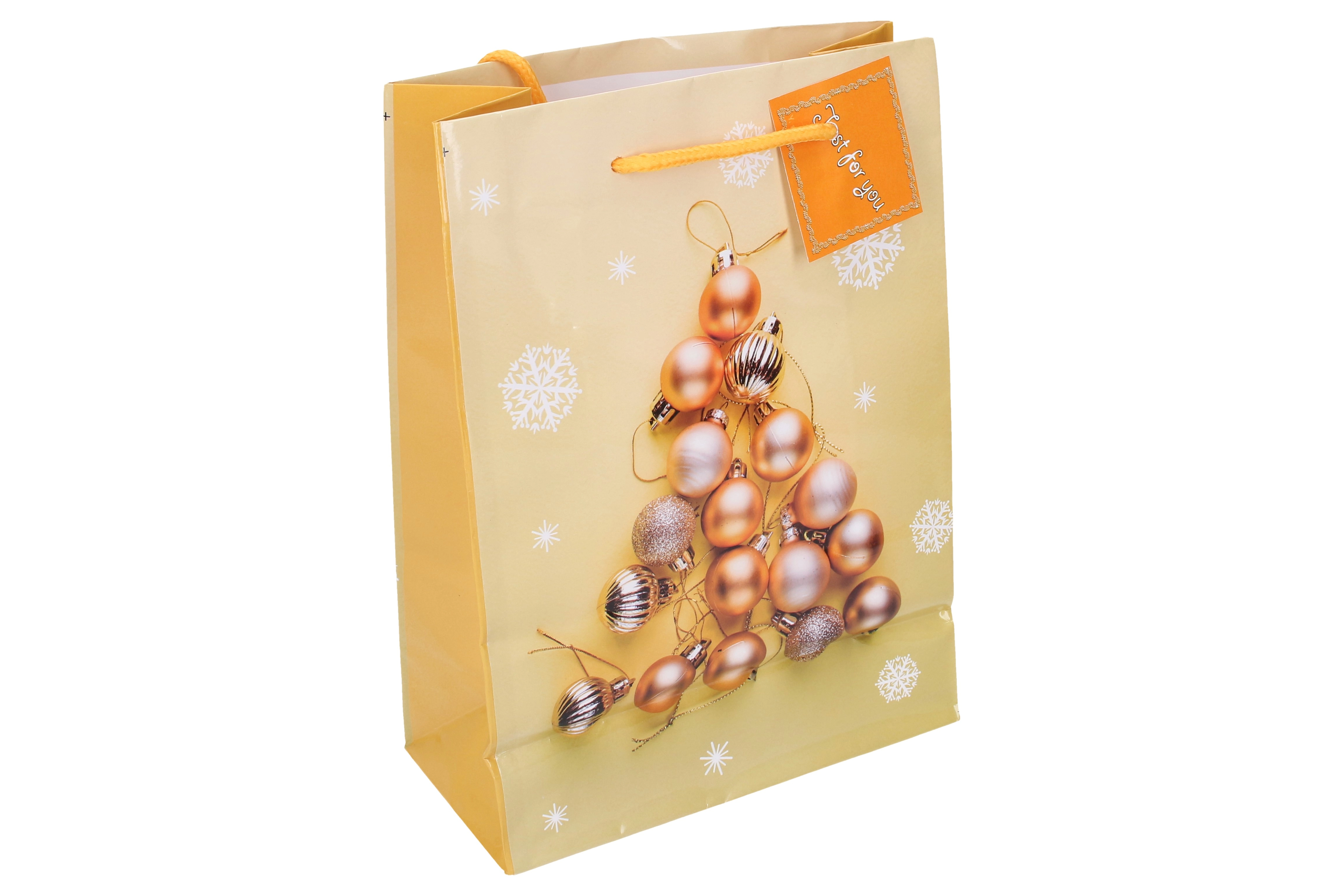 Elegancka świąteczna torebka prezentowa w rozmiarze M o wymiarach 26x32x11 cm, idealna na różne prezenty.