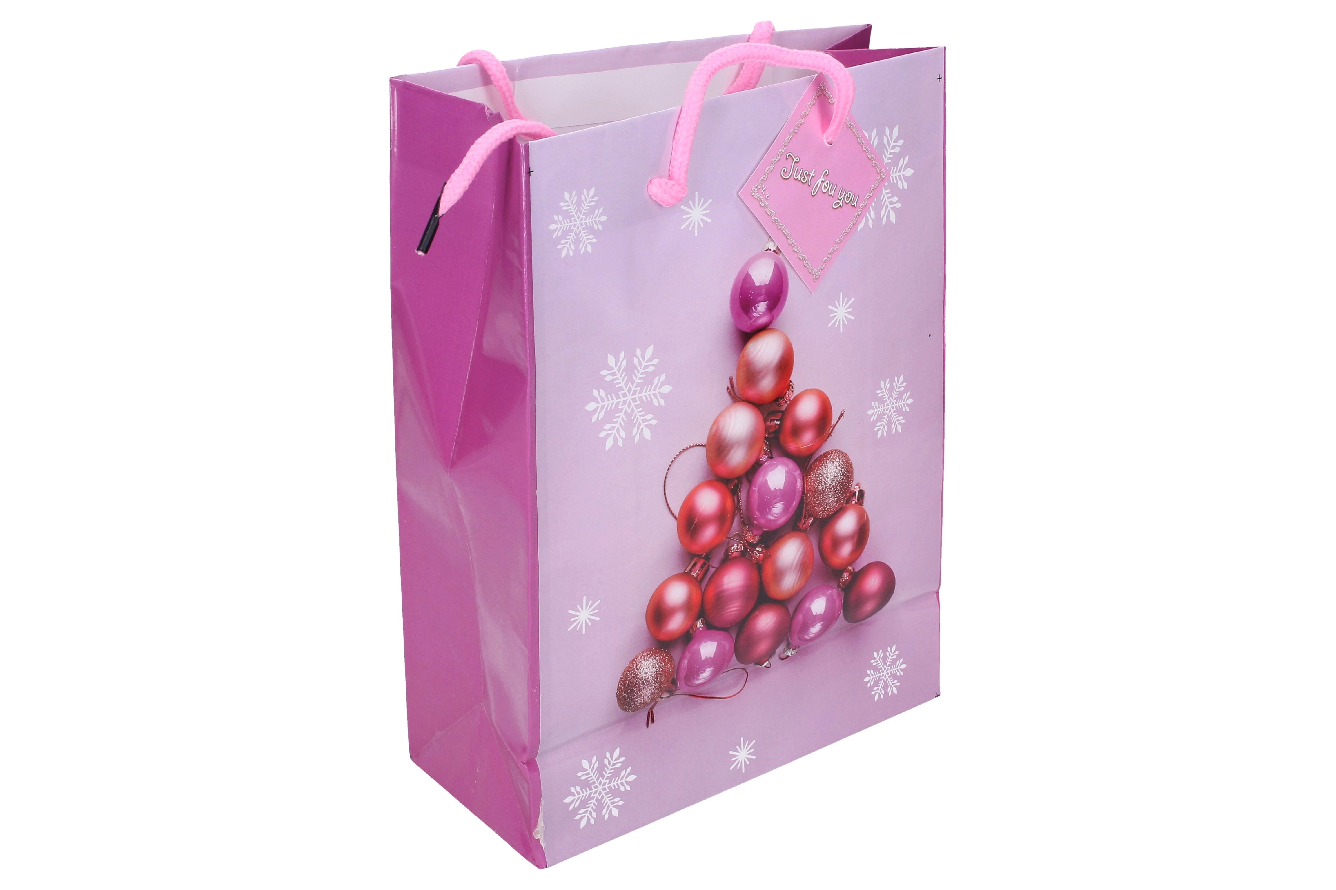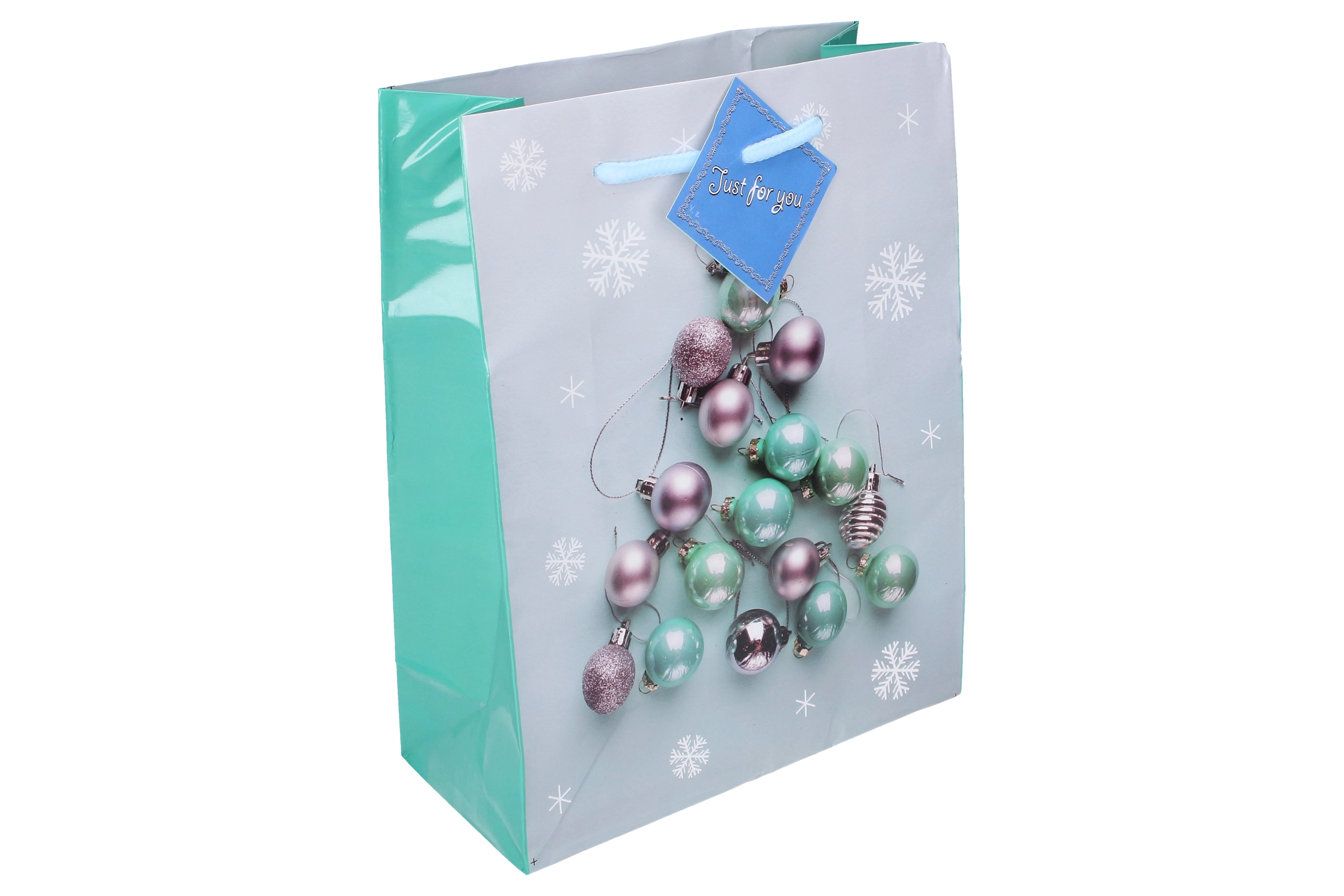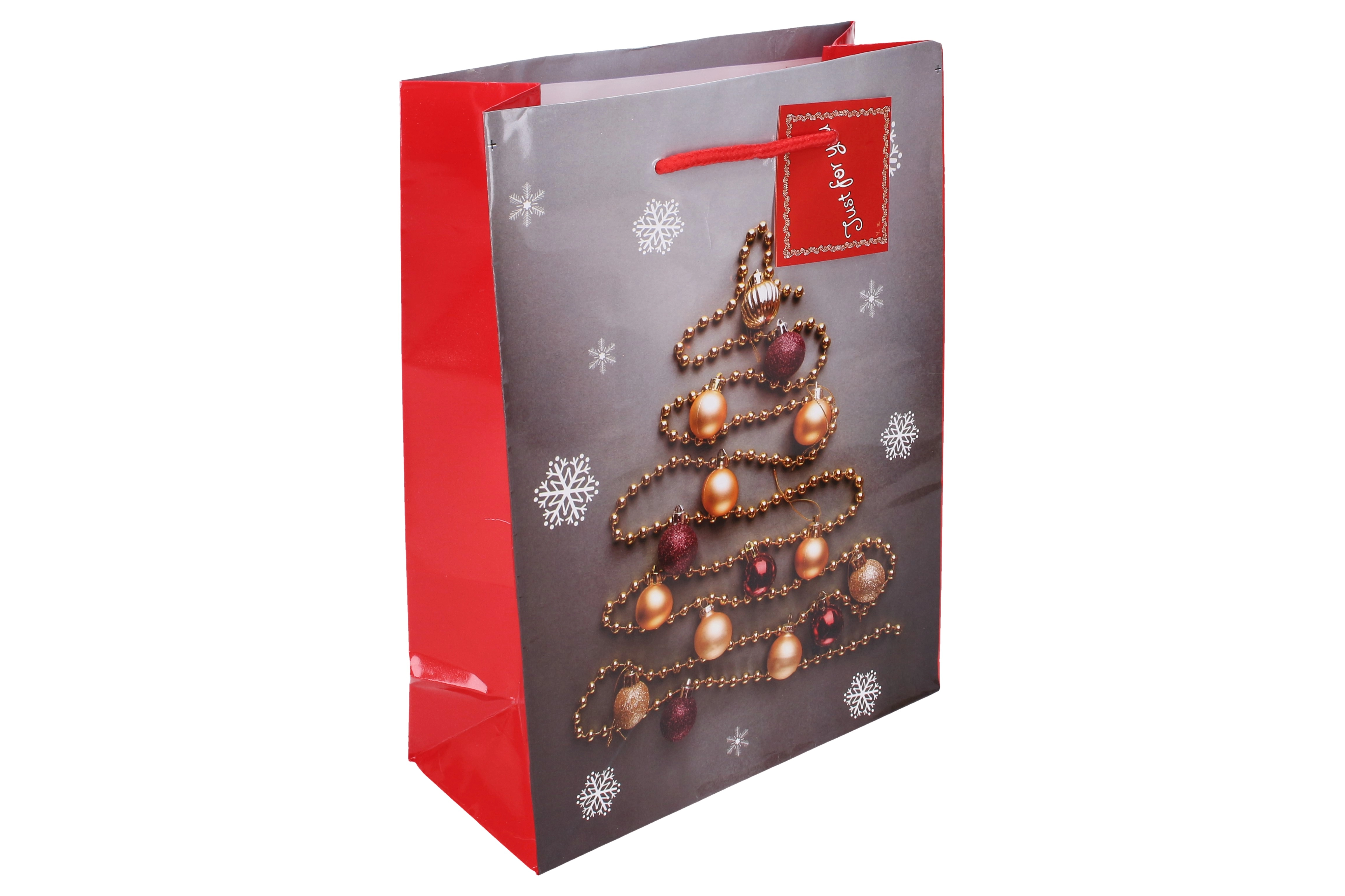 Ta stylowa świąteczna torebka jest dostępna w czterech wariantach kolorystycznych, co czyni ją świetnym wyborem na każdą okazję. Jej średni rozmiar jest idealny do pakowania prezentów – od mniejszych, przez średnie, po większe niespodzianki.