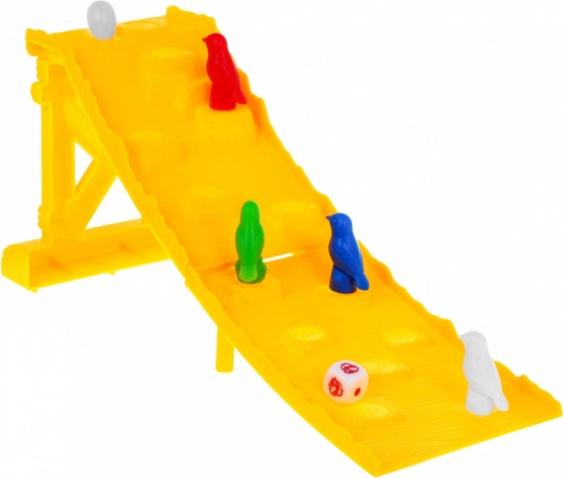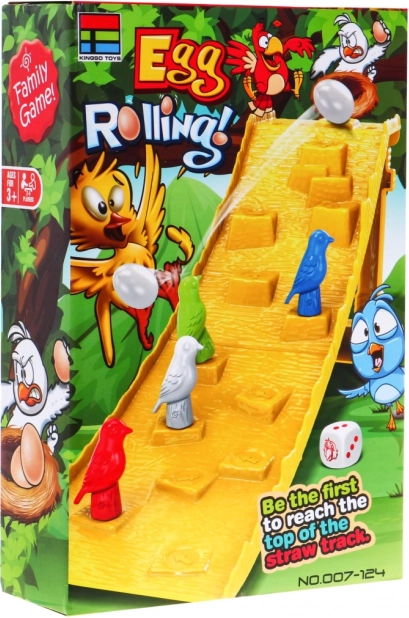 Zabawna i emocjonująca gra planszowa dla najmłodszych od 3 lat, w której kolorowe ptaszki pędzą po słomianych belkach aż na szczyt toru. Gracze rzucają kostką i przesuwają pionki, ale uwaga na spadające jajko! Może strącić przeciwnika z powrotem na start. Idealna dla 2–4 graczy, rozwija zwinność, spostrzegawczość i myślenie taktyczne.