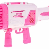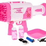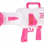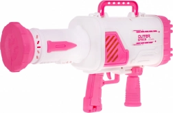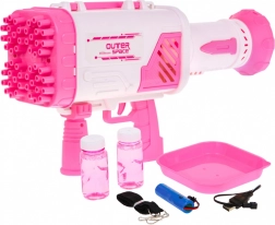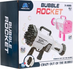 Zabawny pistolet do baniek o futurystycznym designie tworzy setki baniek dzięki głowicy z 52 otworami i efektownemu oświetleniu LED. W zestawie znajduje się akumulator ładowany 3,7 V, dwie buteleczki płynu oraz akcesoria dla wygodnej zabawy. Może służyć także jako mały przenośny wentylator – idealny na dwór i na dziecięce przyjęcia.
