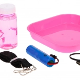 Ten pistolet do baniek zamieni każde popołudnie w bajkowe widowisko. Wystarczy wlać płyn do dołączonej miseczki, zanurzyć głowicę i nacisnąć spust – w kilka chwil pojawią się piękne kolorowe bańki. Dzięki podświetleniu LED bańki wyglądają jeszcze bardziej magicznie, zwłaszcza o zmierzchu.