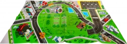 - Parking, samochodzik, helikopter, naklejki, mata do zabawy z drogami
