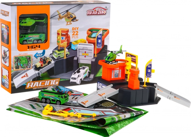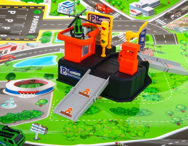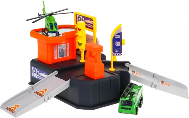 Ramy, wjazd, miejsca parkingowe i lądowisko dla helikoptera zapewniają dzieciom realistyczną zabawę w ruch drogowy i wspierają kreatywność.