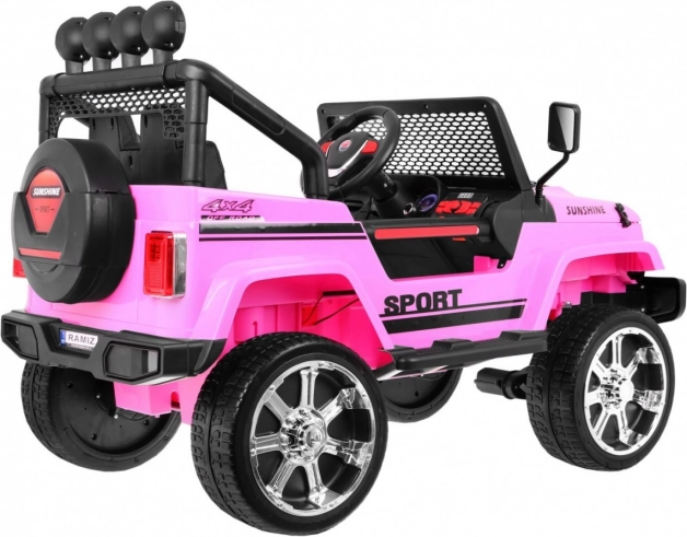 Stylowy różowy elektryczny samochód terenowy Raptor Drifter oferuje napęd 4x4, płynny start, zdalne sterowanie 2,4 GHz oraz oświetlenie LED. Dzięki miękkim kołom EVA, fotelikowi z eko skóry z pasami i panelem audio z Bluetooth/MP3/FM jest idealny do bezpiecznej i pełnej zabawy jazdy. Praktyczny schowek w kole zapasowym oraz składana rączka transportowa ułatwiają codzienne użytkowanie.